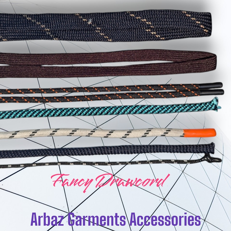 High-quality drawcords available in cotton and polyester, customized in color, size, and finishing to meet garment production needs.